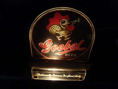 Just minor wear on this Goebel, reverse glass cash register sign out of Detroit, Michigan. Just minor wear but does look to have been rewired from a small florescent to two small bulbs.
