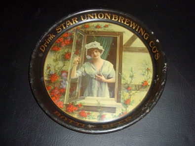 Another stock tray - this one entitled "Good Morning" - from Star Union out of Illinois. Moderate wear - a few small points of note with the worst being the small blemish near the face BUT this is a tough tray to find in any condition. 13 inch diameter and manufactured by American Art Works.