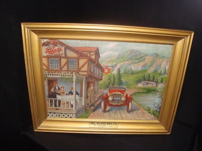 Not the rarest of signs but this Blatz canvas print - in the original frame no less - is one of the nicest that we've seen. Measures 34 1/2 by 26 1/2.