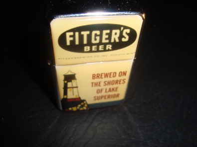Minty condition on this celluloid lighter from Fitgers Brewing. Never been used - reverse is solid polished metal - still sparks!