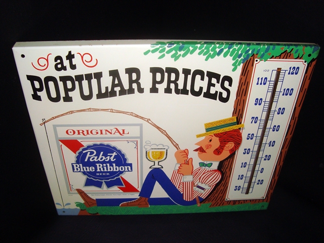 First of two tin themometers for Pabst. Near mint condition, with the original tube and keeps an accurate temperature. Measures 17 by 14 1/2. Not uncommon but the condition is off the charts!