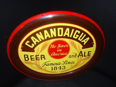 Excellent to near mint on this 17 1/2 by 14 self-framed tin sign for Canandaigua Beer from Cataract Brewing out of Rochester, NY.
